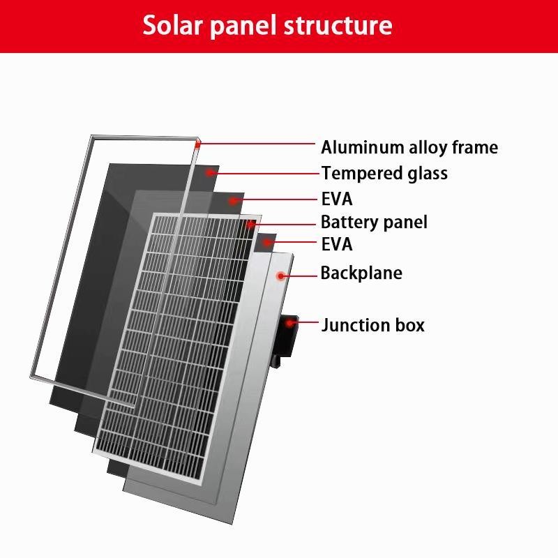 - 構造:PV太陽光電池は,電気的に接続され,保護用ケースに閉じ込められた複数の太陽電池で構成されています.太陽電池は通常,シリコンベースの材料で作られています.単結晶または多結晶シリコンなどカドミウムテルリードや銅インディウムガリウムセレニード (CIGS) のような薄膜材料.太陽電池は,上層ガラスカバーとバックシートの間に収められています.隔熱と保護のための追加の層で.